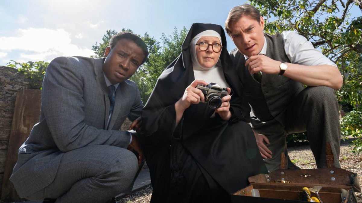 BritBox describes the series as: “It’s the 1960s and police forensics are rudimentary. Luckily the residents of Great Slaughter, nestled deep in the British countryside, have a secret weapon: Sister Boniface. This nun might be predisposed to forgive – but she’s also one hell of an amateur detective. If there’s evidence to be found Boniface will find it with a little help from dashing maverick DI Sam Gillespie and buttoned-up Bermudan DS Felix Livingstone, who’s horrified to be stuck in the eccentric world of Great Slaughter.”